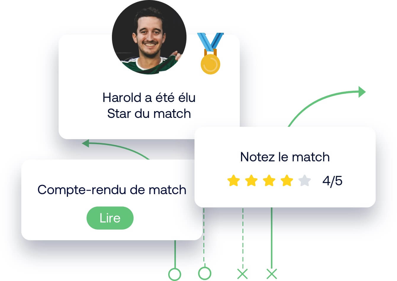 Compte-rendu, notes, votes, commentaires, photos, vidéos : un après-match animé entre coéquipiers !