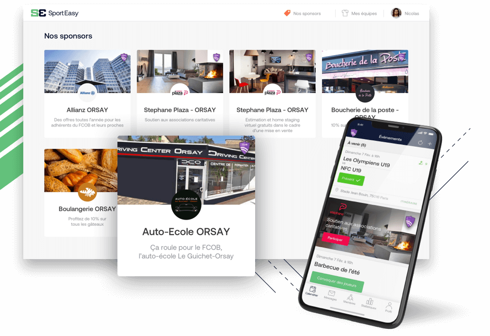 Avec l’offre intégrale de SportEasy tu peux afficher jusqu’à 5 sponsors, à la fois sur mobile et sur le web.