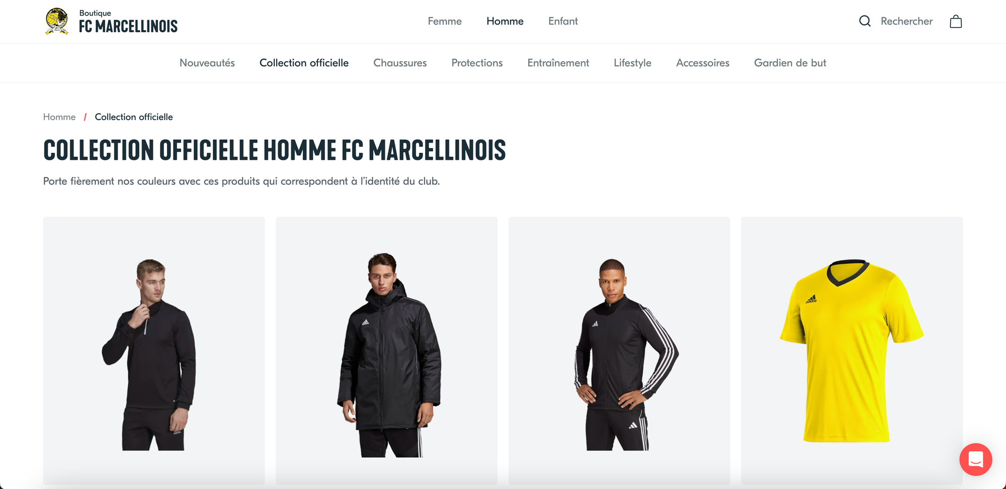 Vincent a su parfaitement exploiter toutes les fonctionnalités de la boutique pour faire en sorte que le lancement de cette dernière soit un succès. Il a notamment configuré la collection officielle du Football Club Marcellinois pour mettre en avant une sélection de produits correspondant à l'identité du club.